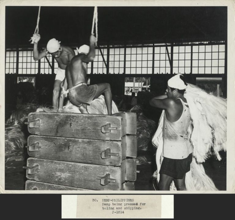 30. HEMP - PHILIPPINES: Hemp being pressed for baling and shipping. J-1214.
