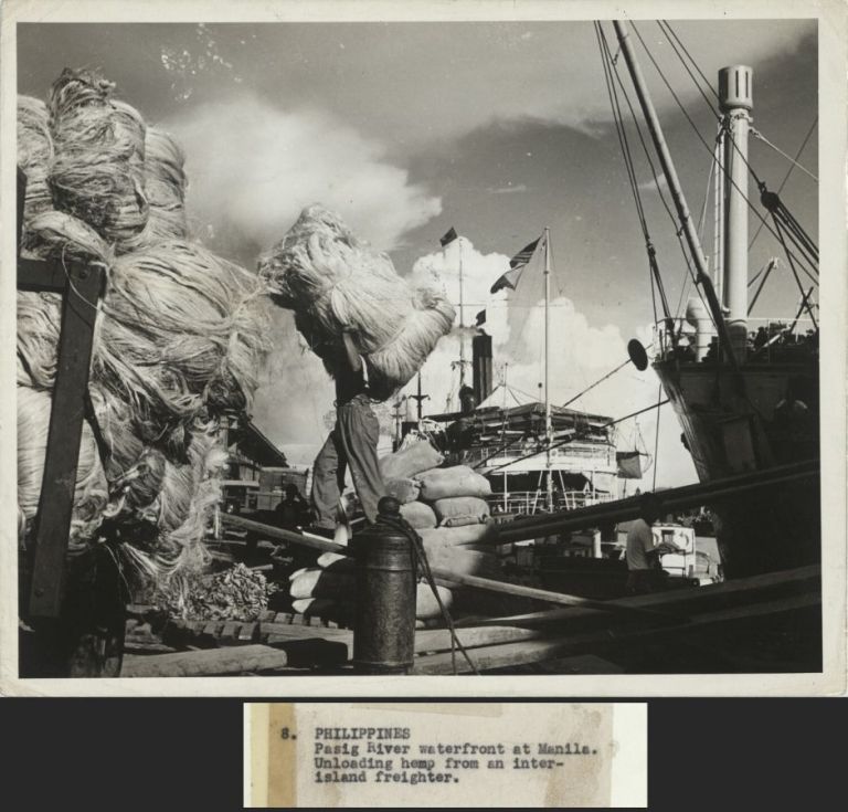 8. PHILIPPINES: Pasig River waterfront at Manila. Unloading hemp from an inter-island freighter.