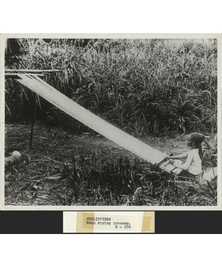PHILIPPINES: Hemp drying process. E-276. [mislabeled - actually a Filipina weaving outdoors].